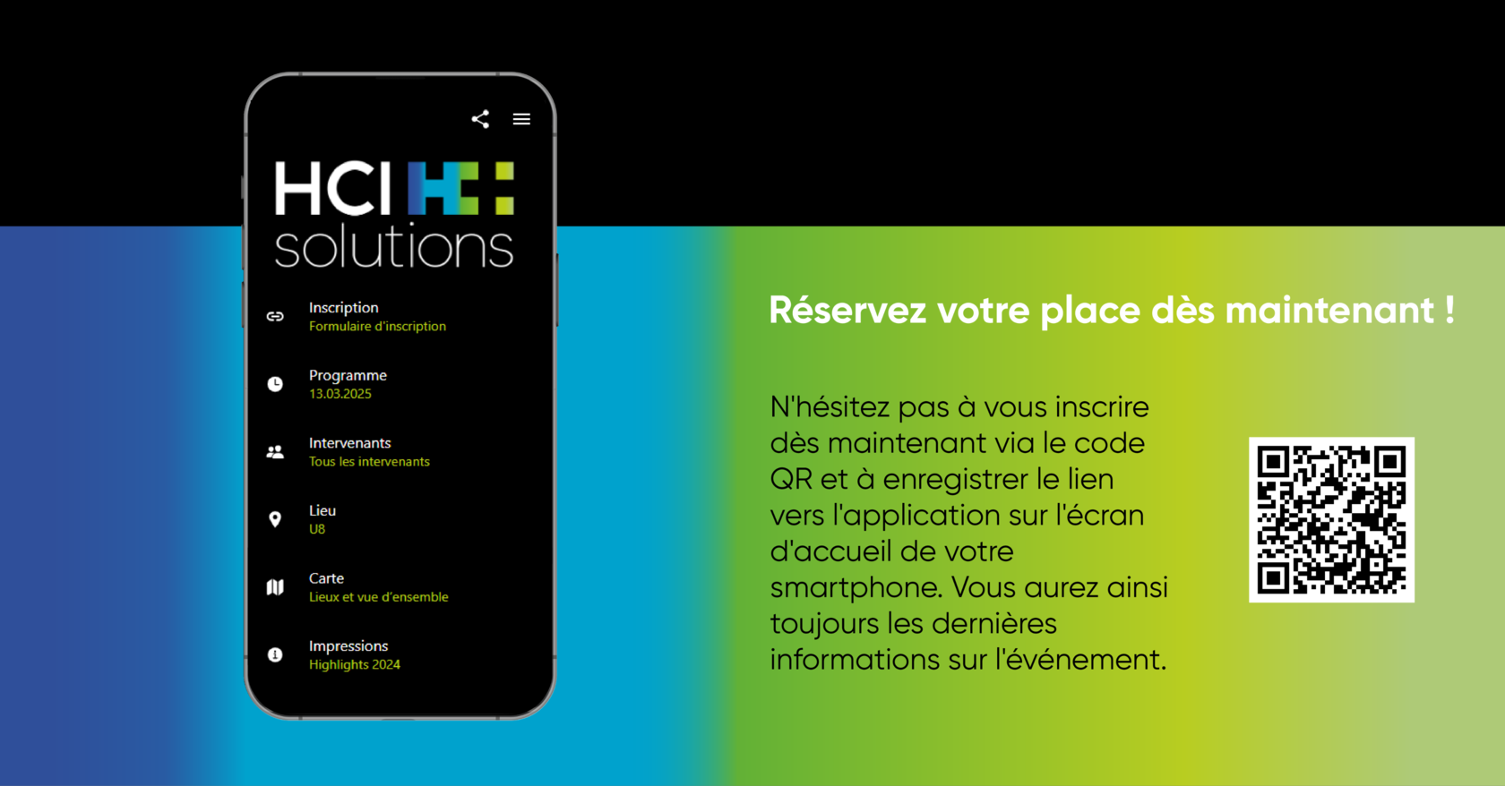 Nous nous réjouissons de l'événement annuel HCI Connect. Comme nous l'avions déjà annoncé l'année dernière, nous sommes actuellement en pleine phase de transformation. Néanmoins, nous pouvons toujours organiser l'événement à notre adresse habituelle, mais cette fois-ci dans nos nouveaux locaux temporaires du Swing Space, Untermattweg 8. Comme les années précédentes, nous organiserons différentes sessions et conférences sur différents thèmes et produits intéressants. Veuillez prendre note que les présentations seront également proposées en français.